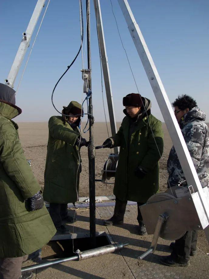 刘鸿雁与合作者及学生在内蒙古黄旗海采集湖泊沉积物样品