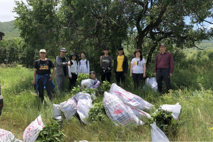 刘鸿雁与学生及合作者在内蒙古赛罕乌拉采集植物样品