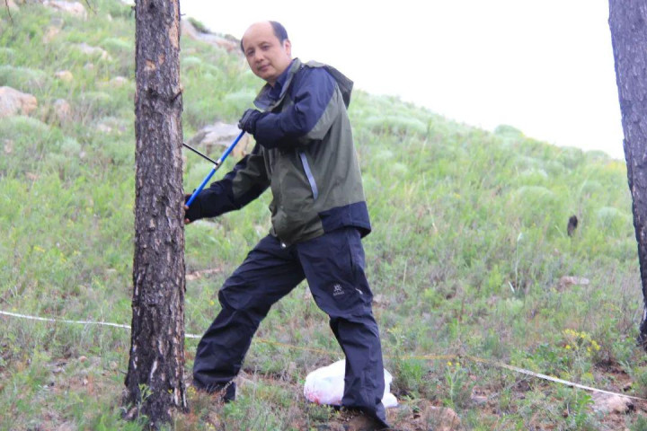 刘鸿雁在西伯利亚南部森林-草原过渡带采集树芯