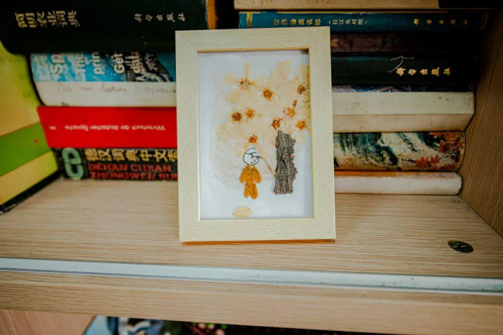 刘鸿雁书柜上的植物标本画作