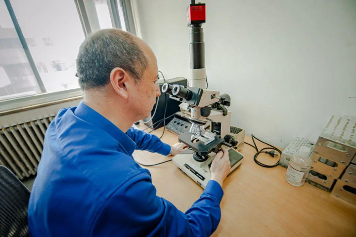 一台1980年从日本购买的显微镜,曾经属于刘鸿雁的导师,在改革开放初期的中国是非常难得的“装备”。刘鸿雁亲手对它进行了“现代化改装”,用直接连接计算机的图像传输系统,取代了显微镜自带的黑白胶卷相机,使这台“祖传”显微镜可以在如今数码照片的时代“老当益壮”。